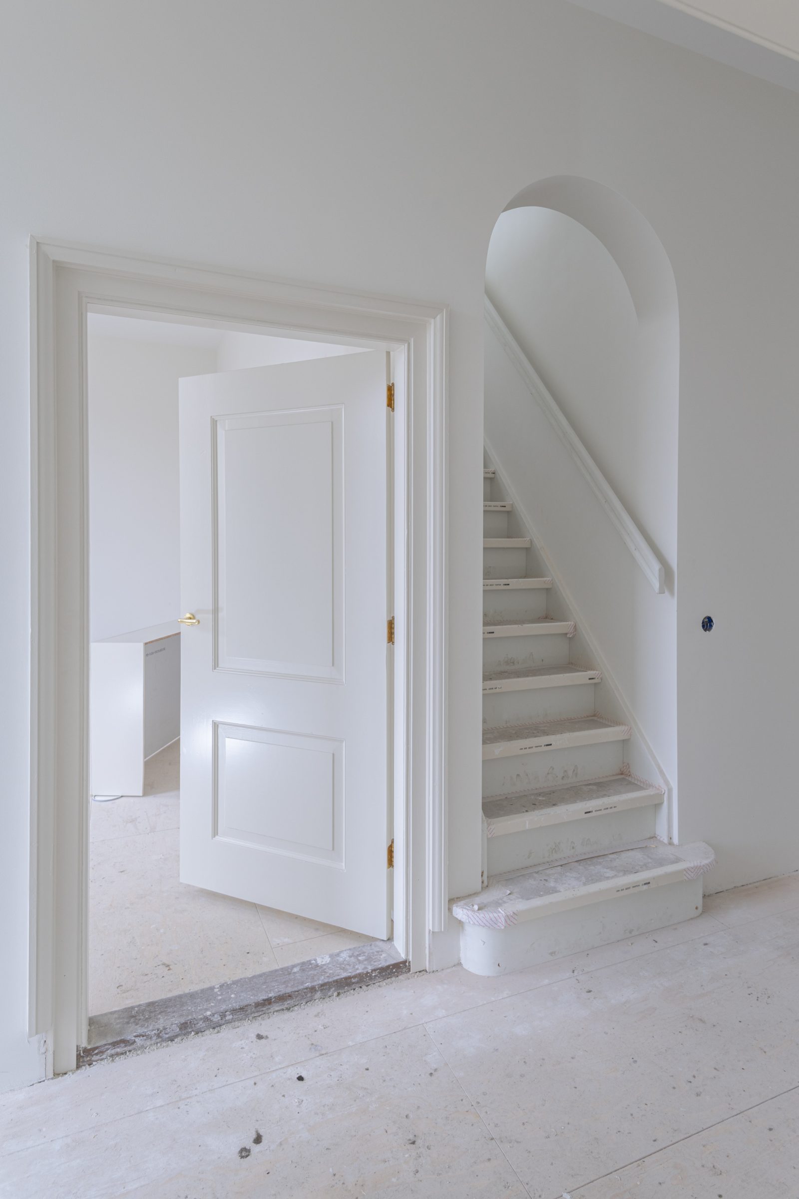 Na het werk van de stukadoors kan het aftimmeren beginnen en worden de deuren afgehangen. Op tijd dus voor de oplevering eind februari.