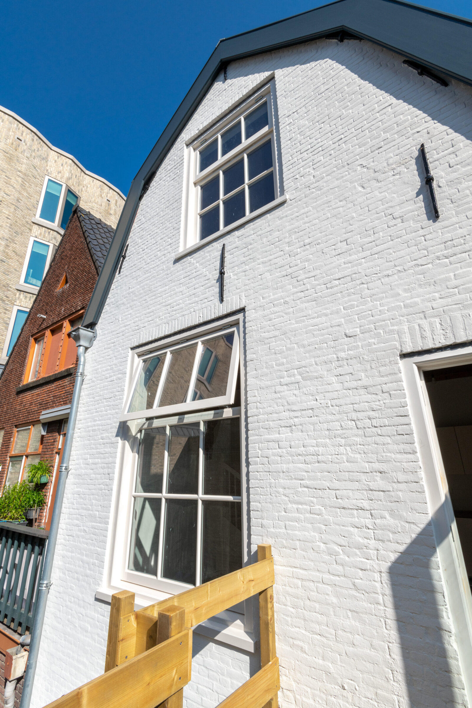 Bij een "karakteristiek bepalend" pand komt altijd een stukje complexiteit om de hoek kijken, met in dit project de uitdaging om het aanzicht van het pand te behouden. Vernieuwde technieken moeten aansluiten op oudere, wat niet altijd werkt. "Een van de oplossingen bij dit pand waren inhaakkozijnen. Door het gebruik van dit type kozijnen behouden we het karakteristieke aanzicht, terwijl er gebruik kan worden gemaakt van moderne draaikiepramen."