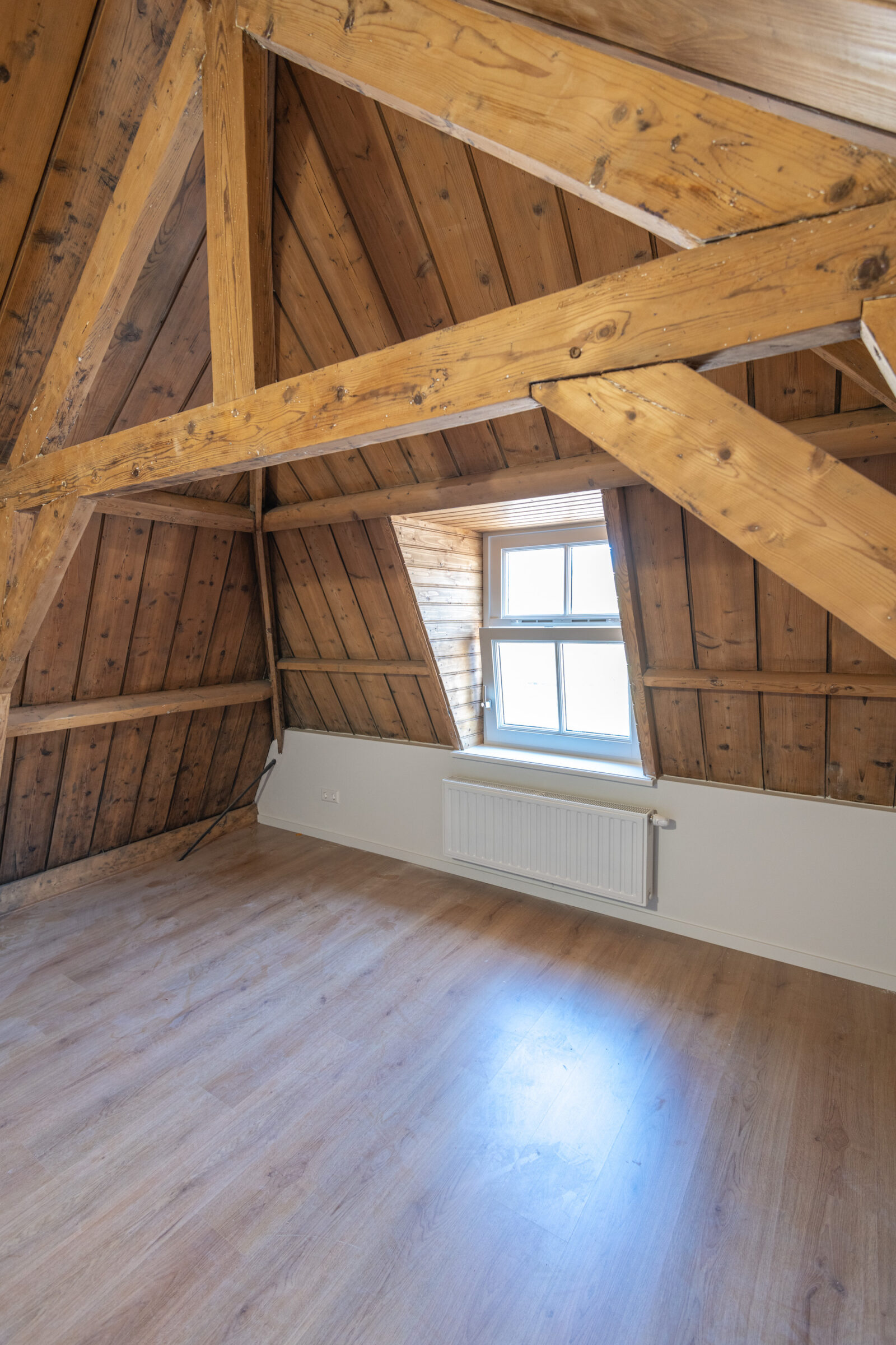 Met de prachtige houtstructuur die onder de kap zit, lag er ook een uitdaging in de isolatie. Buitenisolatie was gewenst, waardoor de houtstructuur zichtbaar kond worden gemaakt. Echter mocht buitenisolatie niet betekenen dat het aanzicht veranderde. Een goede aansluiting en het behoud van de kapconstructie was daarom van belang. "De gemeente kijkt hierin mee. Het is aan ons om de details goed te behartigen en van tevoren aan te tonen wat het plan is."