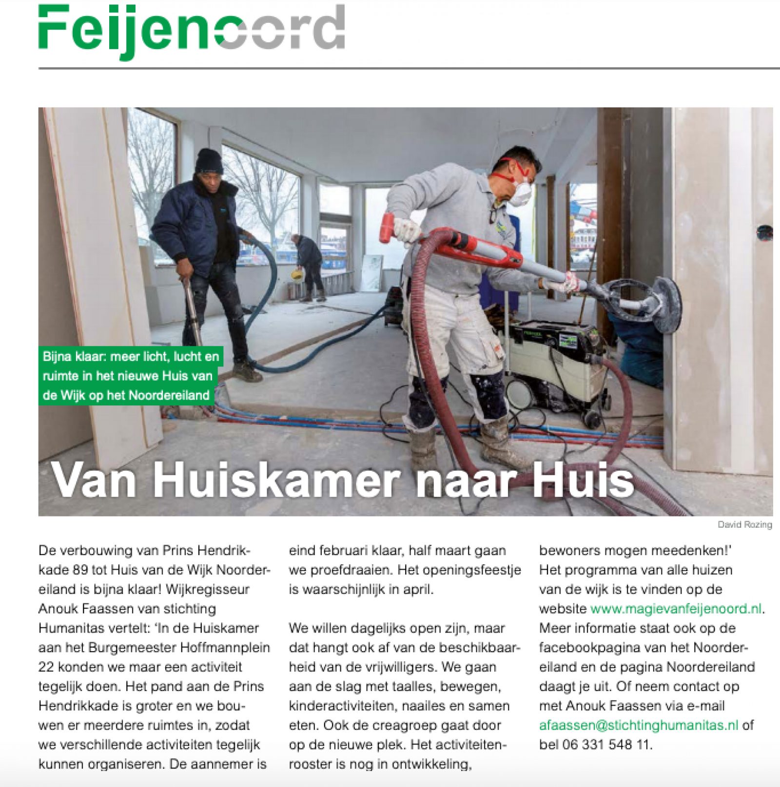 In de Stadskrant van Gemeente Rotterdam is onlangs een artikel verschenen over een project waar Koers nauw bij betrokken is. Na afronding van de verbouwing van Prins Henddrikkade 89 tot Huis van de Wijk Noordereiland, kan Stichting Humanitas Rotterdam op deze nieuwe locatie straks meerdere activiteiten tegelijkertijd plaats laten vinden.