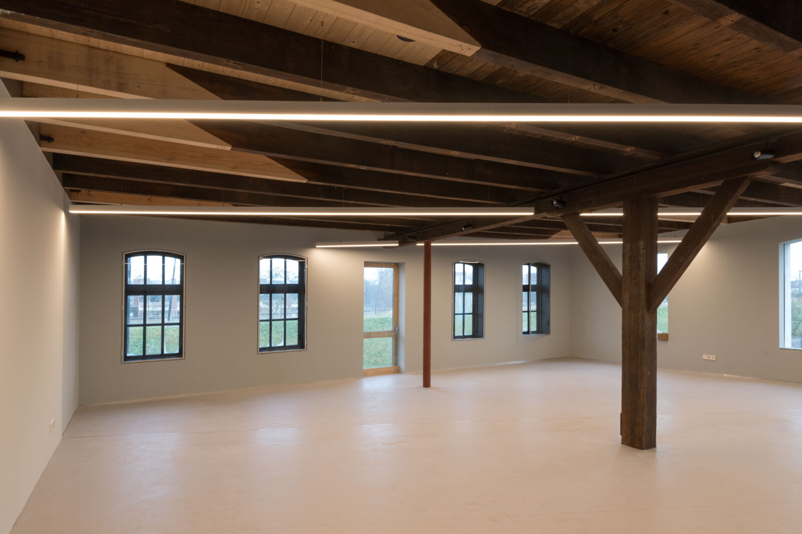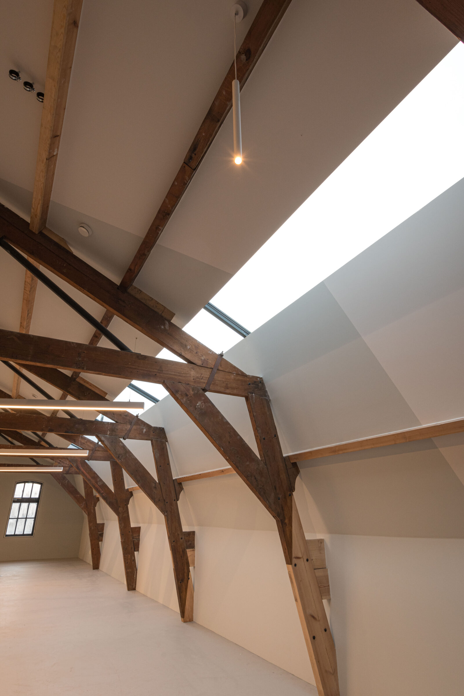 Gezien de lange leegstand was de hoofdconstructie in slechte staat. KOERS herstelde deze met traditionele houtverbindingen, waardoor authentiek vakmanschap tot zijn recht komt. Extra gordingen, stalen trekstangen en verstevigingsplaten werden aangebracht om de stabiliteit te waarborgen. Daarnaast werd de entree aangepast om centrale trappenhuizen met een lift te realiseren. De liftschachtconstructie werd eveneens door KOERS verzorgd.