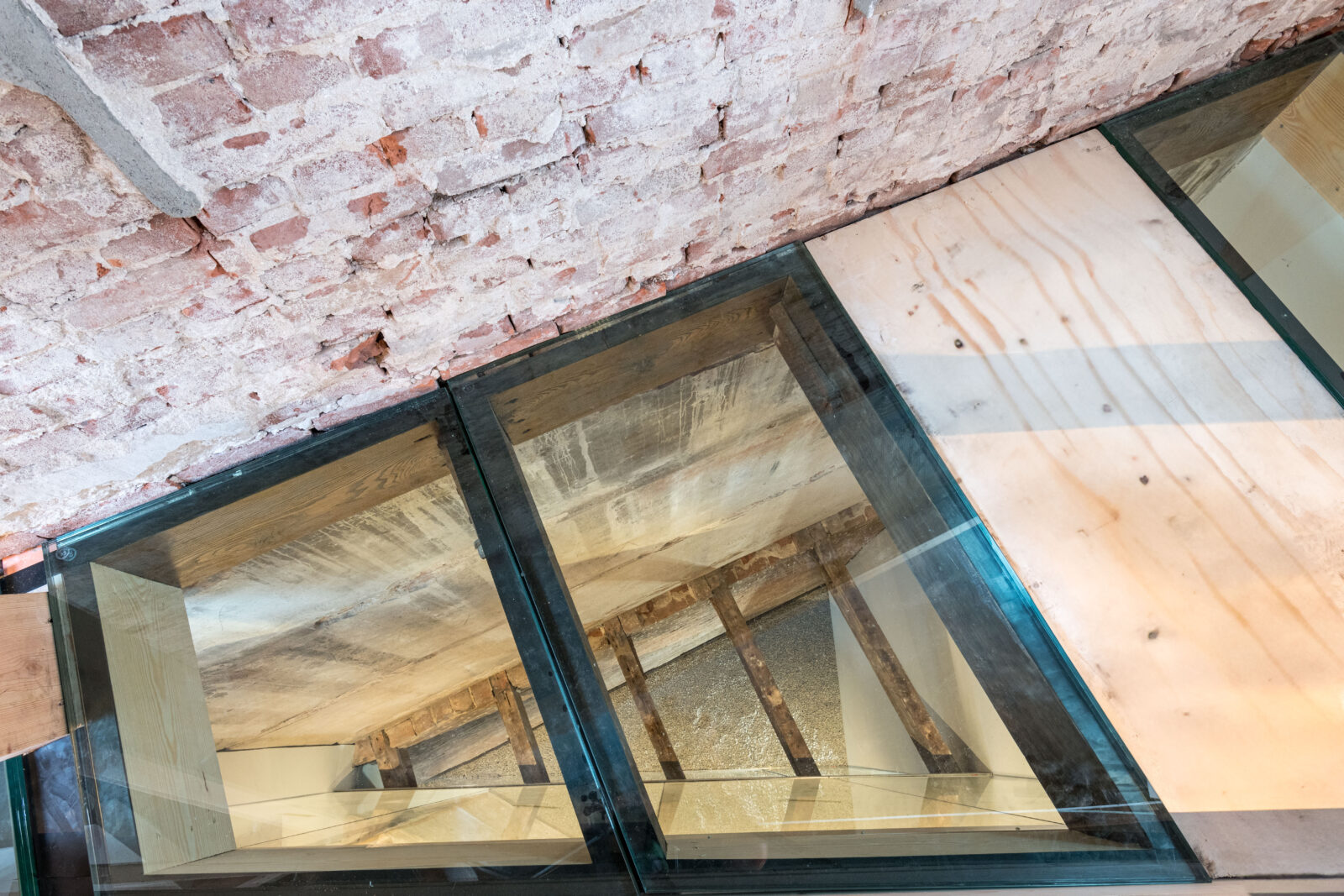 Dit betekent dat historische elementen niet volledig worden hersteld, maar in hun doorleefde staat behouden blijven. Zo blijven de door pekel aangetaste metselstenen zichtbaar en worden originele houten vloerbalken in het zicht gelaten. Dit eerlijke restauratieprincipe geeft het gebouw een unieke identiteit en vertelt het verhaal van zijn maritieme verleden.