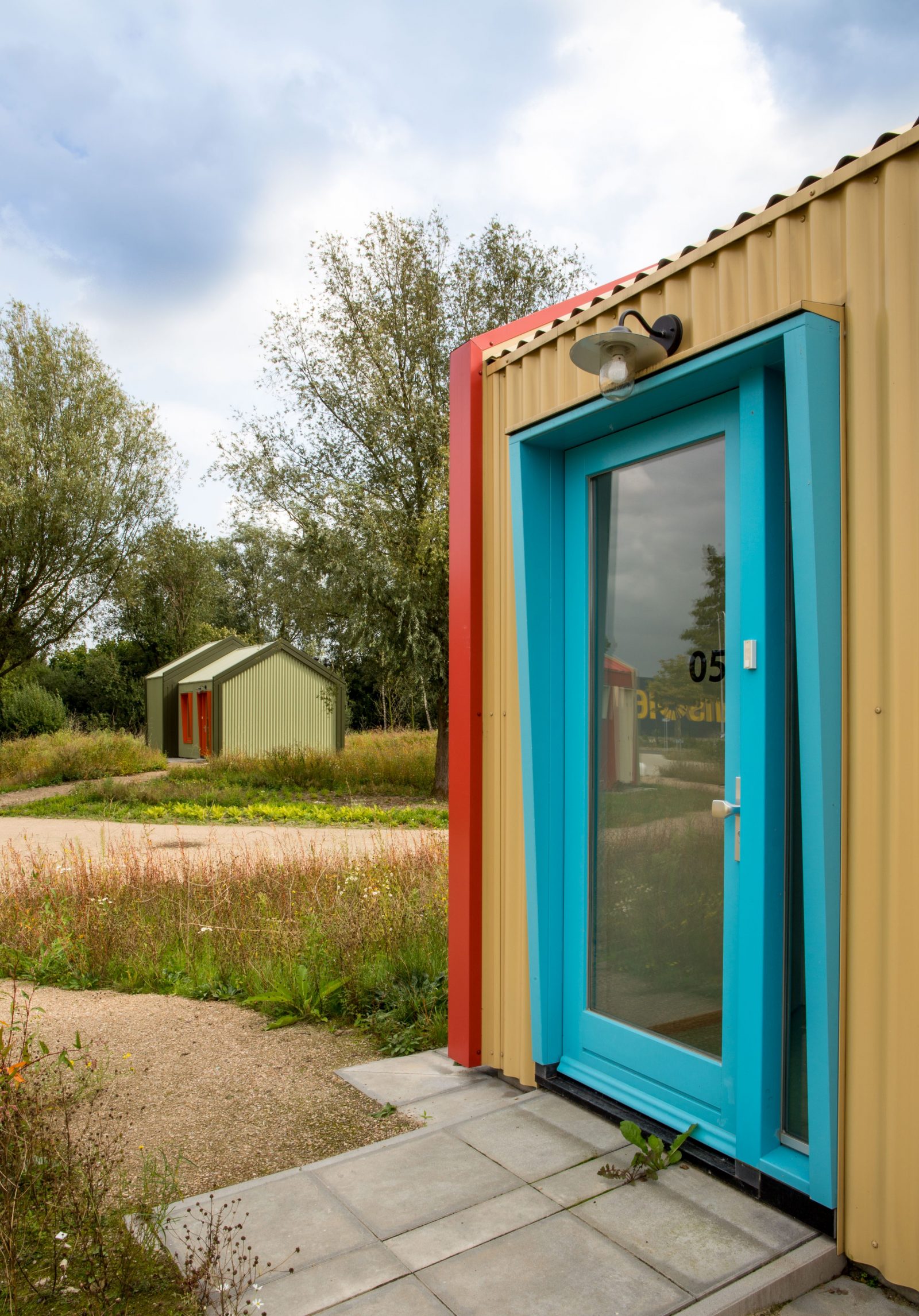 De 12 woningen werden door KOERS Eindhoven in bouwteamverband uitontwikkeld en gebouwd. Bas Jansen: “Het is houtskeletbouw met stalen gevelbekleding en stalen dak. Wat je noemt: hufterproof. Maar door het kleurgebruik ziet het er vrolijk uit. Wij hebben geprobeerd er iets moois van te maken.”